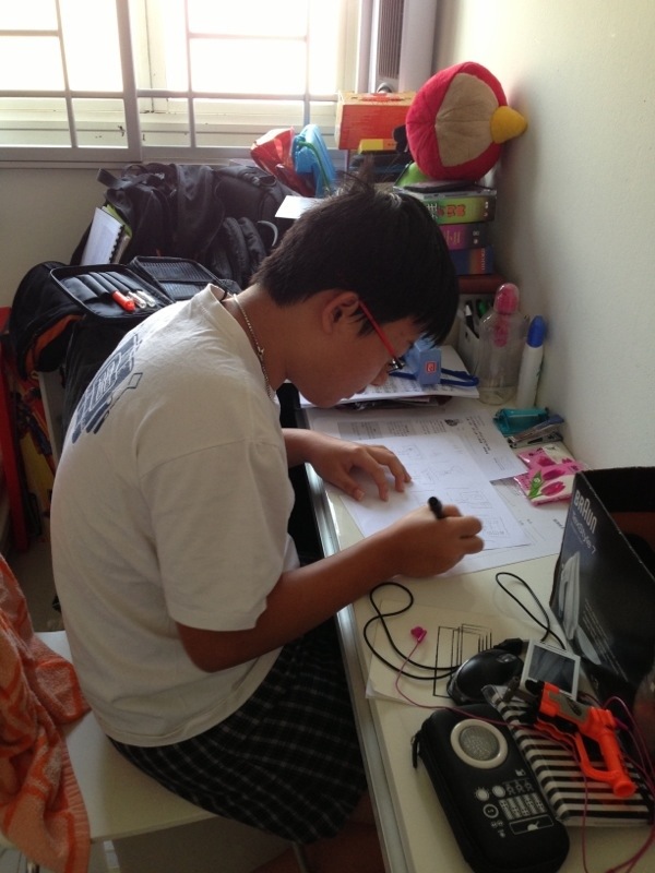 随随哥哥在家赶假期作业,因为明天就要开学了!